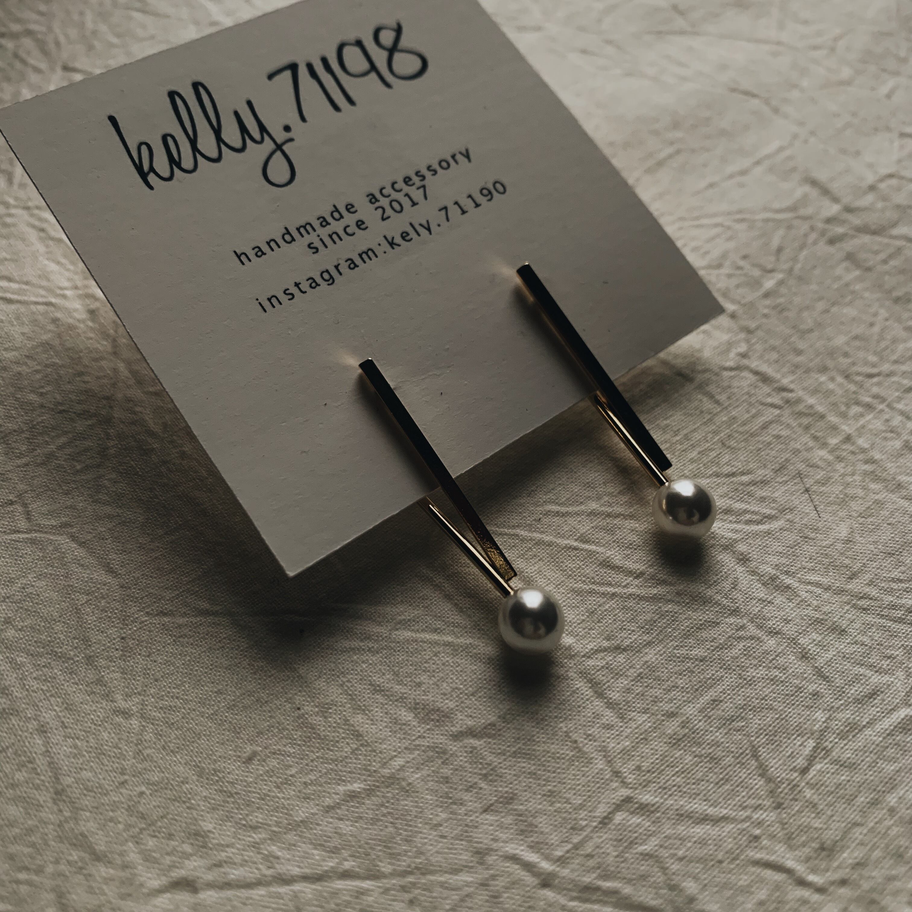 キャッチ部分にスティックパールがぶらさがっている、あまりないデザインのピアス。